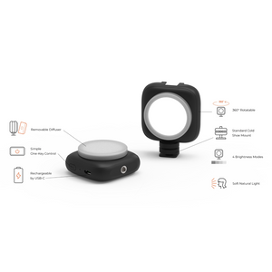 • In the box: LED Light, Diffuser, Standard Cold Shoe Mount, USB Charging Cable