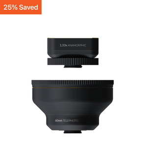 An essential kit for mobile filmmakers and content creators, with the LensUltra 1.33x Anamorphic and LensUltra 60mm Telephoto Lens.