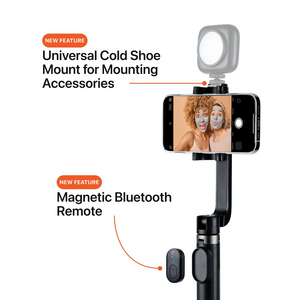 Transforms instantly into a comfortable handheld grip designed for mobile shooting, ready for vlogging and selfies.