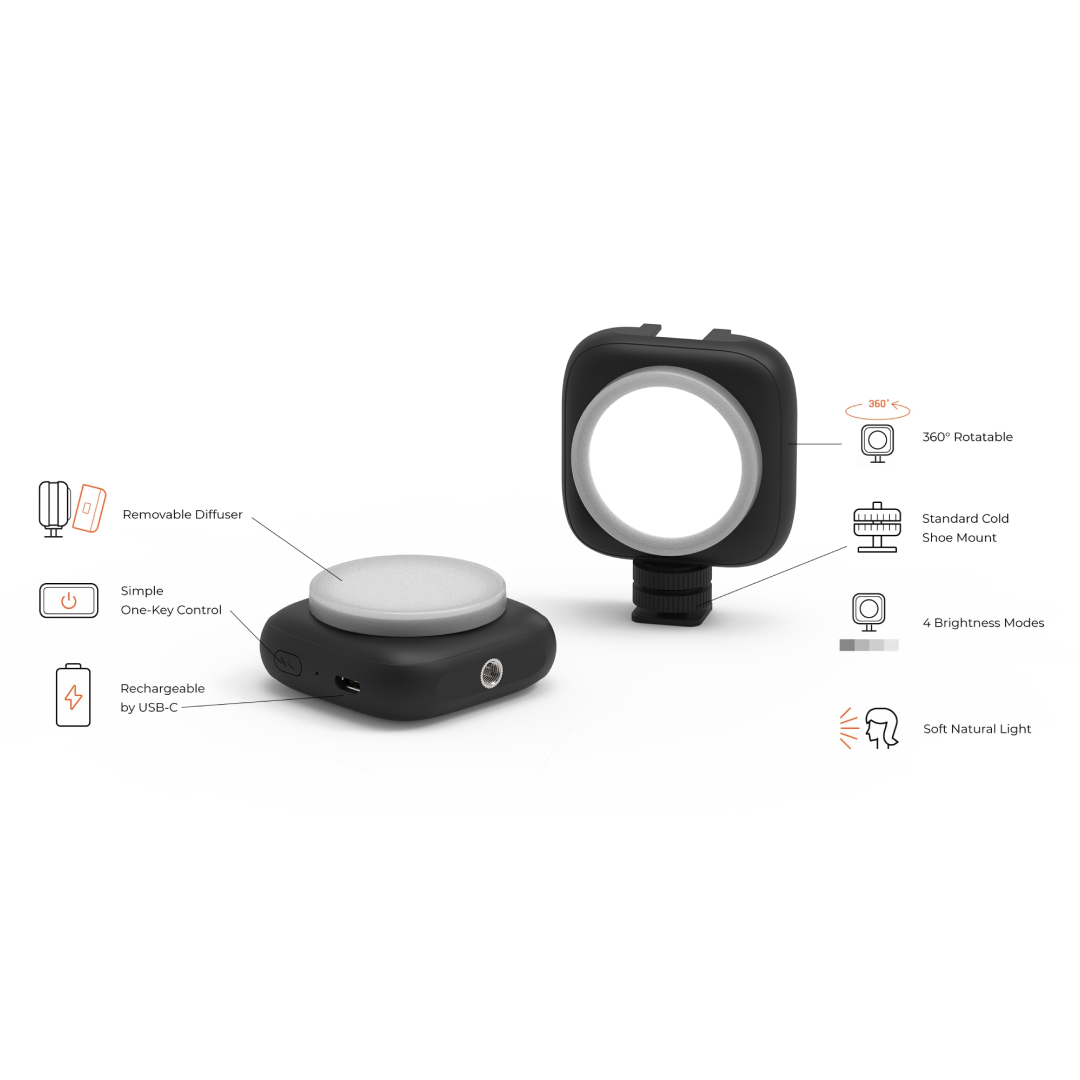 A 6500k natural fill light with 4 brightness settings, accommodating to various shooting occasions